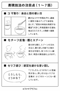 - A. 調理ウンチクより人間ドラマ寄りなので、初見にも入りやすい構成です。