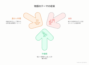 「追放」は能力や成果のみで人を測るシステムの副作用として描かれます。食堂はそのシステムからこぼれ落ちた人のセーフティネット。