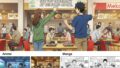 映像では、フードコート特有のざわめきや生活音が背景に流れ、観る者を日常の一場面に引き込みます。